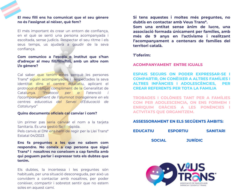 Adjuntem un díptic, on trobareu resposta a algunes preguntes i com contactar amb Veus Trans*.