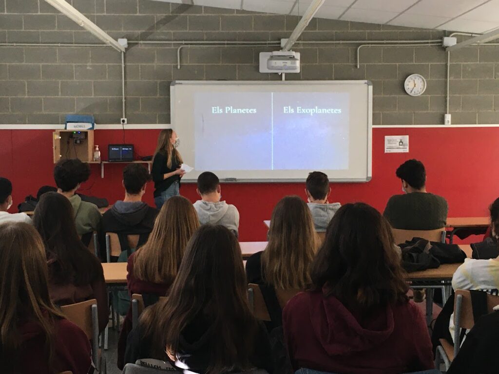 La Mariona Sales, alumna de 2n de batxillerat de l’Institut, ha exposat de manera brillant el seu treball de recerca, Els exoplanetes, dins el marc de la Setmana de la Ciència. Els alumnes del batxillerat científic han pogut conèixer què són els exoplanetes, com es detecten i sobretot, com neix i es desenvolupa un magnífic treball de recerca. La Mariona ha explicat que s’ho ha passat molt bé fent-lo i que ha après un munt de coses, i que amb curiositat i il·lusió es poden assolir fites inversemblants. Felicitats pel treball i per l’excel·lent exposició feta avui.