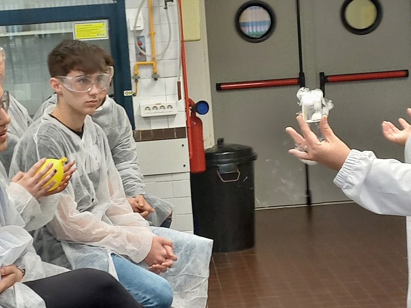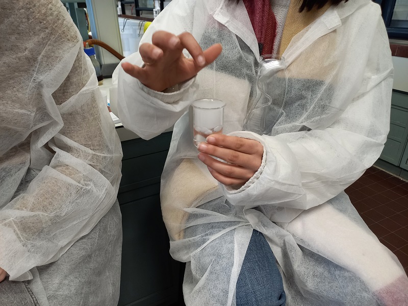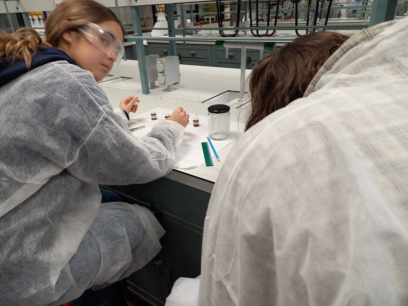 Avui els alumnes de química de 1r de batxillerat hem visitat les instal·lacions de la Facultat de Química de la Universitat de Barcelona i hem fet pràctiques als seus laboratoris. Després d’una explicació necessària sobre les mesures de seguretat al laboratori hem pogut experimentar amb temperatures extremadament baixes amb el gel sec i nitrogen líquid, hem identificat mostres d’analgèsics mitjançant cromatografia i descobert en quina mostra d’entre quatre que ens han presentat hi havia sang, gràcies a la reacció quimioluminescent de l’hemoglobina amb el luminol. També hem practicat diferents tipus de reaccions en tubs d’assaig. Ha estat una experiència molt interessant.