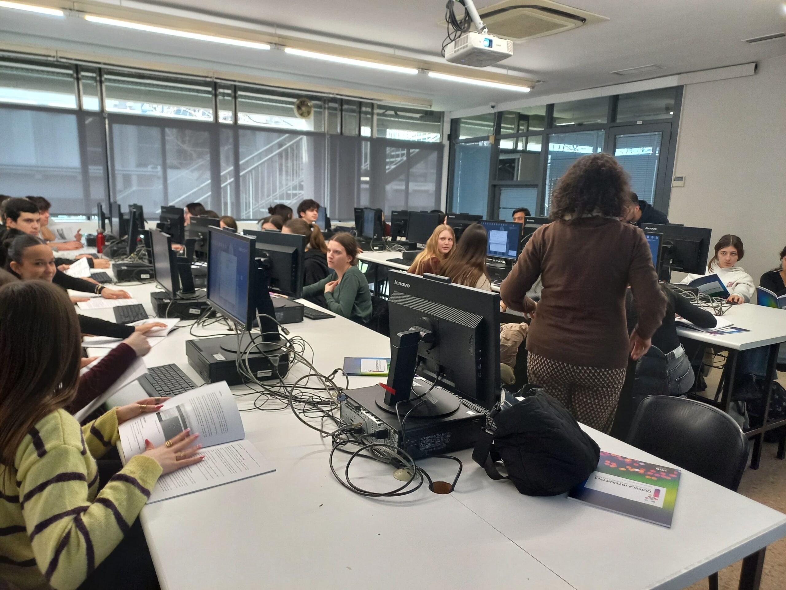 Fa uns dies, l’alumnat de 1r i 2n de batxillerat que cursen la matèria de QUÍMICA han participat en les Jornades de Química Interactiva de la UAB. Això ens ha permès fer pràctiques d’anàlisis químiques als laboratoris de la Universitat Autònoma, i treballar simulacions de molècules a les seves aules d’informàtica. Ha estat molt interessant i això ha permès aclarir dubtes sobre futurs estudis universitaris a part de l’alumnat.