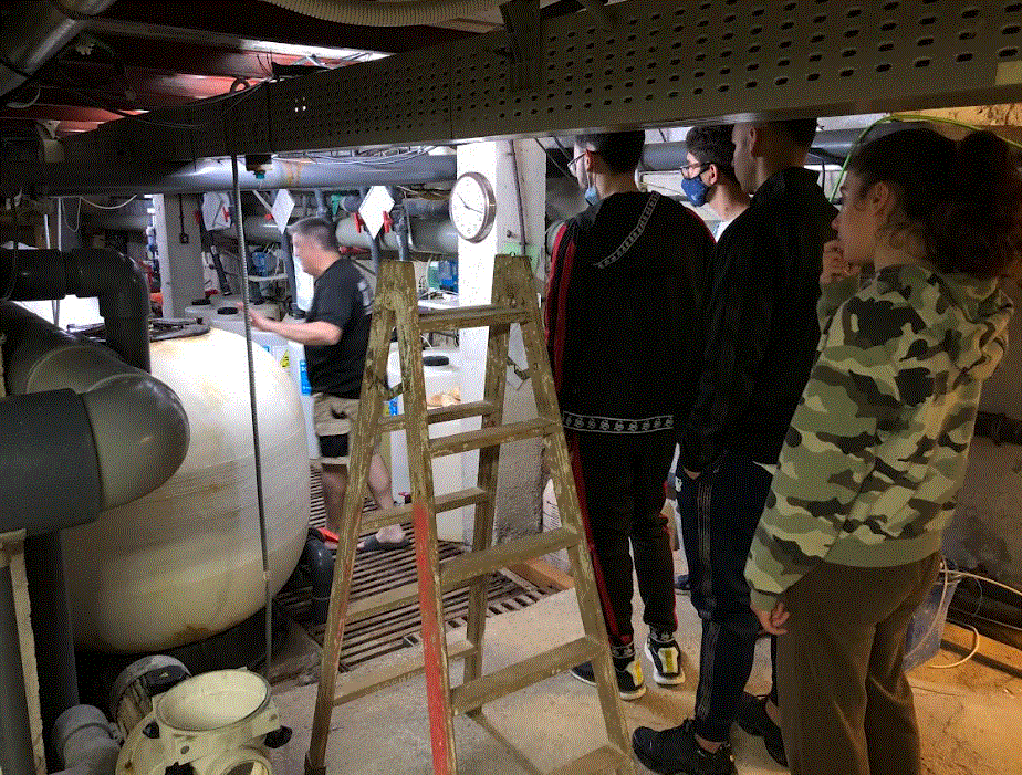 Els alumnes d’IFE (AMIE) del centre van utilitzar el transport públic per anar i tornar de Parets del Vallès, amb la intenció de visitar la Piscina Municipal Miguel Luque. Allà els va atendre personal de manteniment que va donar una petita xerrada sobre la instal·lació. Els alumnes que reben el mòdul professional MP18: Reparació d’avaries i reposició d’estris, van poder visitar la maquinària de manteniment d’aigües.
