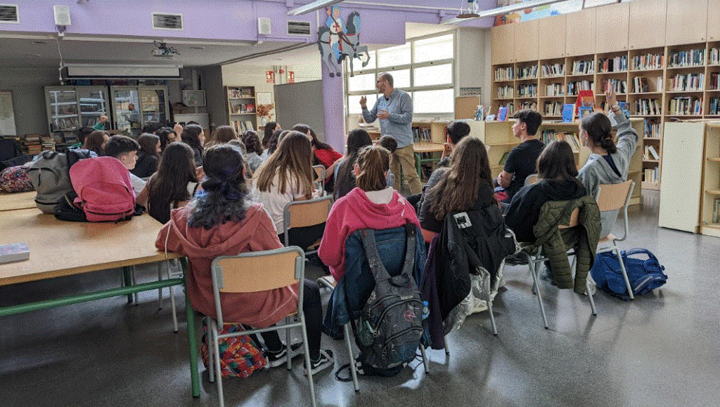 Aquest dimecres, 27 d’abril, l’alumnat de 2n d’ESO ha rebut en Toni Cotet, autor de les lectures que hem fet fins ara, Projecte Túning i Il·lusions trencades. Ens ha explicat com es va iniciar en el món de l’escriptura, com compagina la feina de professor en un institut amb l’art d’escriure i alguns detalls sobre les seves obres. A més, hem pogut preguntar-li un munt de coses d’allò més interessants i ens ha dedicat i signat els llibres.