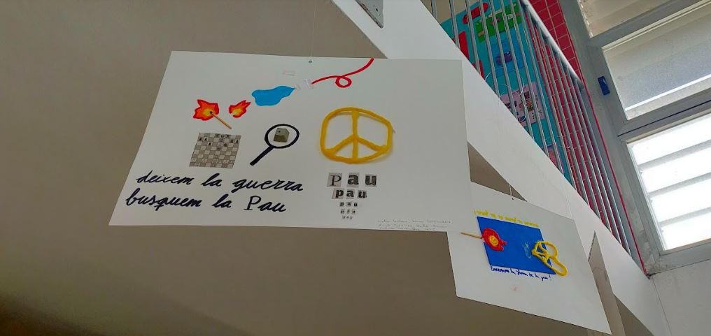 L’entrada mostra els poemes visuals que l’alumnat de 3r i 4t d’ESO va crear en els Tallers organitzats per la Biblioteca Ca l’Oliveras i l’artista Miquel A. Mercadé. L’alumnat va visitar l’exposició d’aquest artista lliçanenc i va expressar gràficament què pensa del conflicte.