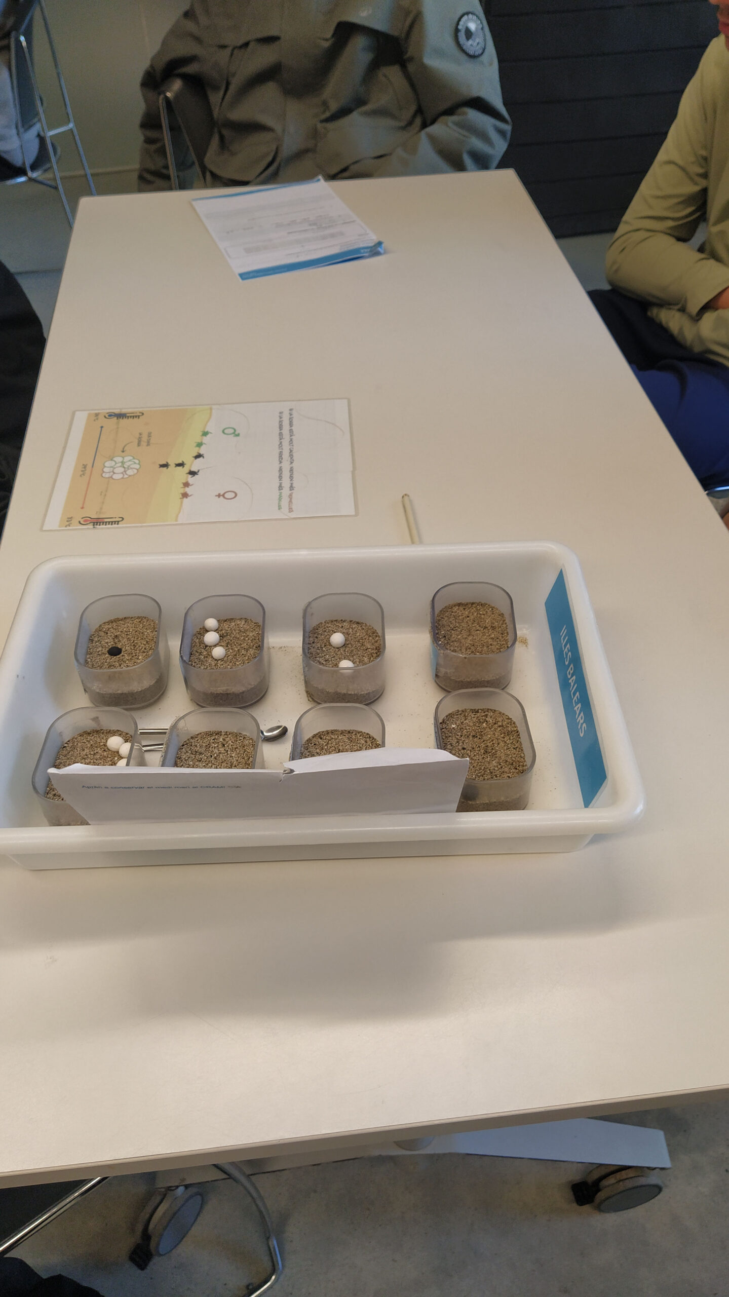 Van investigar com afecta la temperatura als corrents marins, van fer un experiment sobre els efectes de l’acidificació dels mars i van analitzar l’impacte del canvi climàtic en la nidificació de les tortugues marines. També ens van explicar com es recuperen les tortugues que tenen a la clínica i quines dificultats es troben per retornar-les al mar.