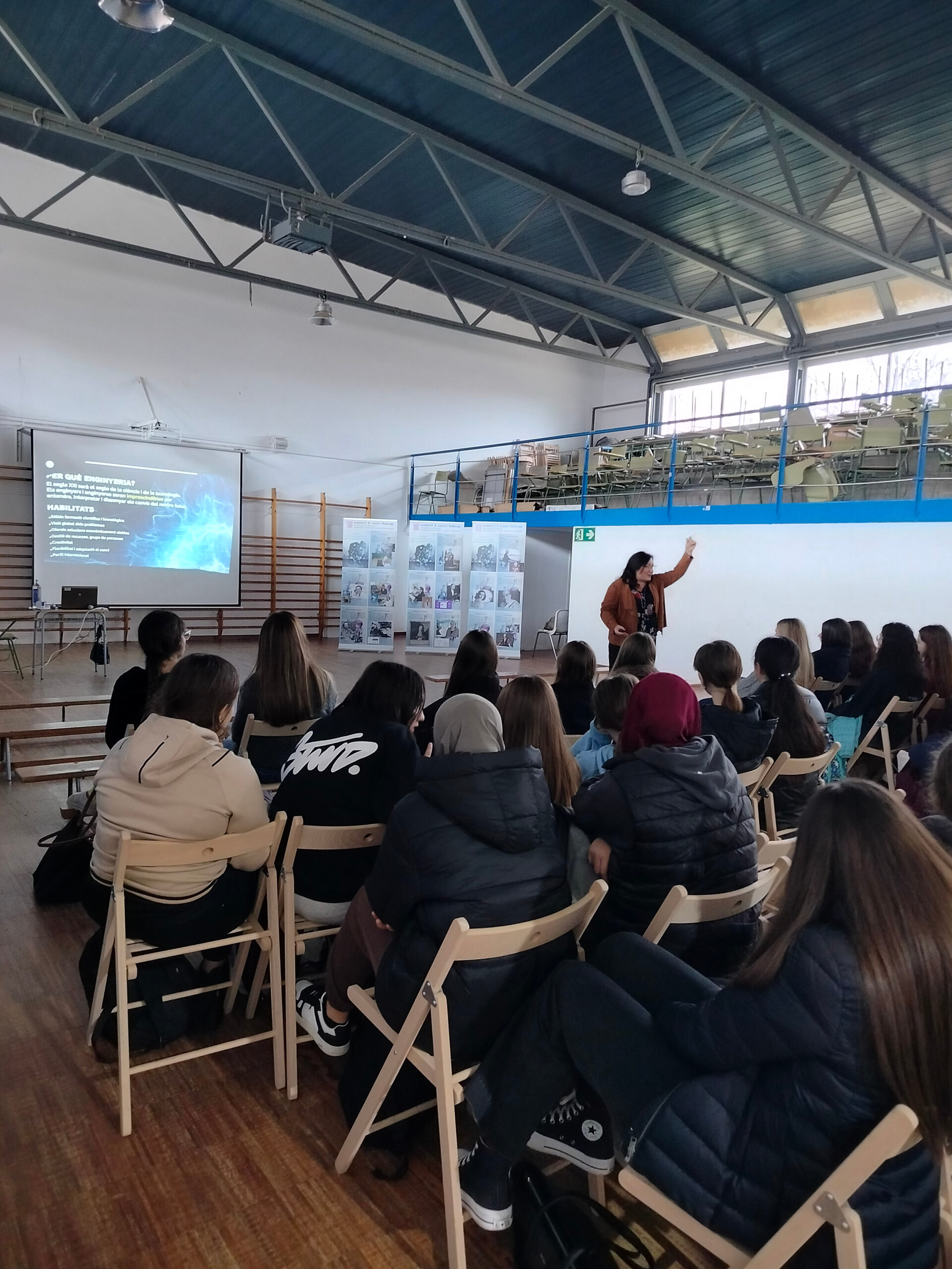 Dilluns 2 de febrer, dintre de les activitats del Dia de la Dona i la Nena a la Ciència, ens ha visitat la professora de la UPC i divulgadora Núria Salan. Ens ha explicat els estudis que es poden cursar a la UPC i algunes experiències seves com a dona de ciència. Tot posant en valor el paper passat i futur de les dones en ciència