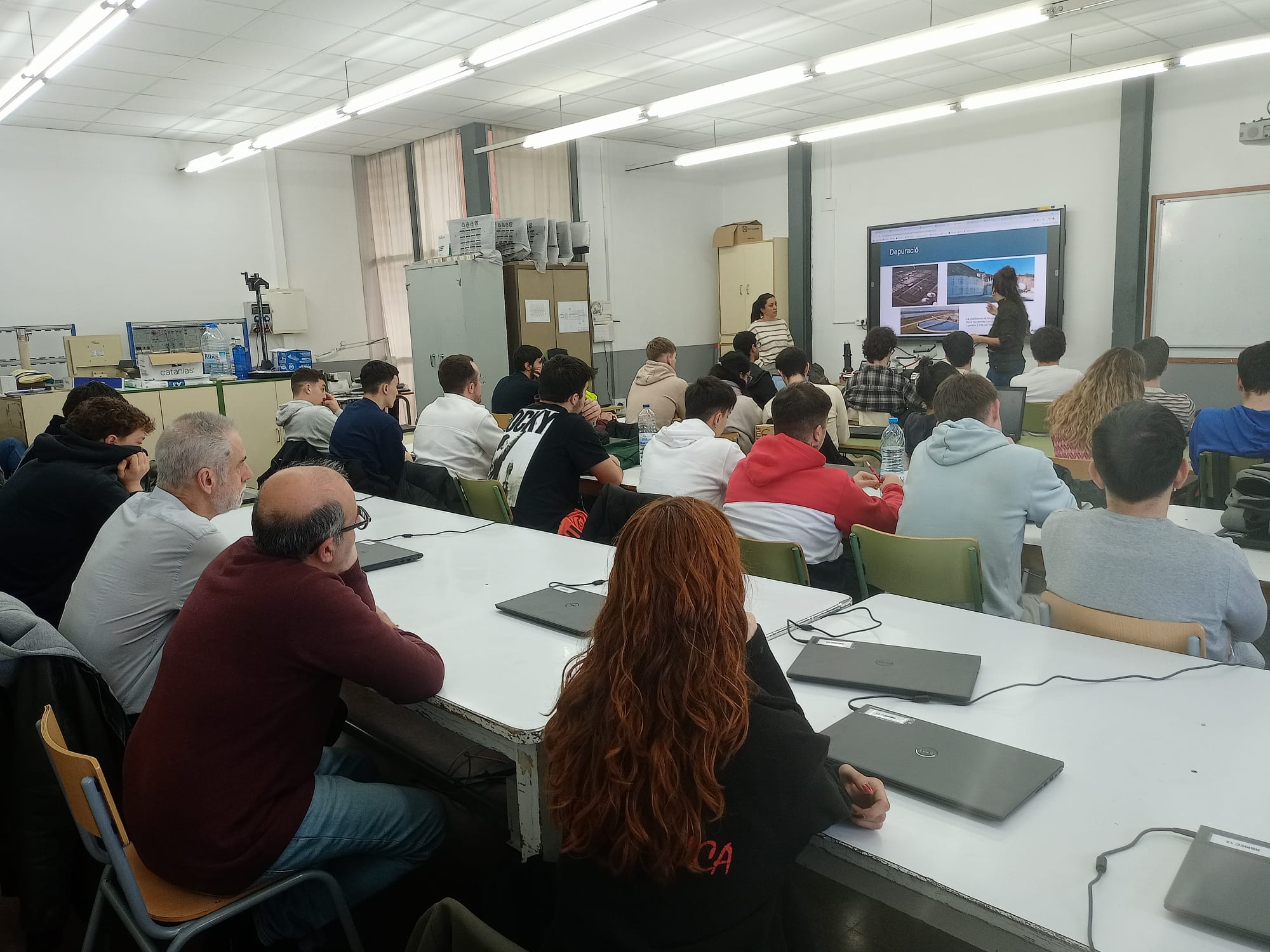 Les ponents que ens van visitar, Ona Ruiz i Judith Martínez, dues enginyeres d’Agbar, van fer una exposició sobre el cicle de l’aigua, com el tracten a l’empresa, els problemes i reptes que presenta la gestió de l’aigua, i aquelles àrees de l’empresa on poden encaixar el nostre alumnat. Realment interessant!