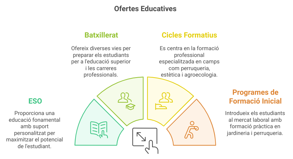 - ESO (Educació Secundà ria Obligatòria): Una formació essencial que et prepara per a etapes posteriors, amb atenció personalitzada i suport acadèmic constant.