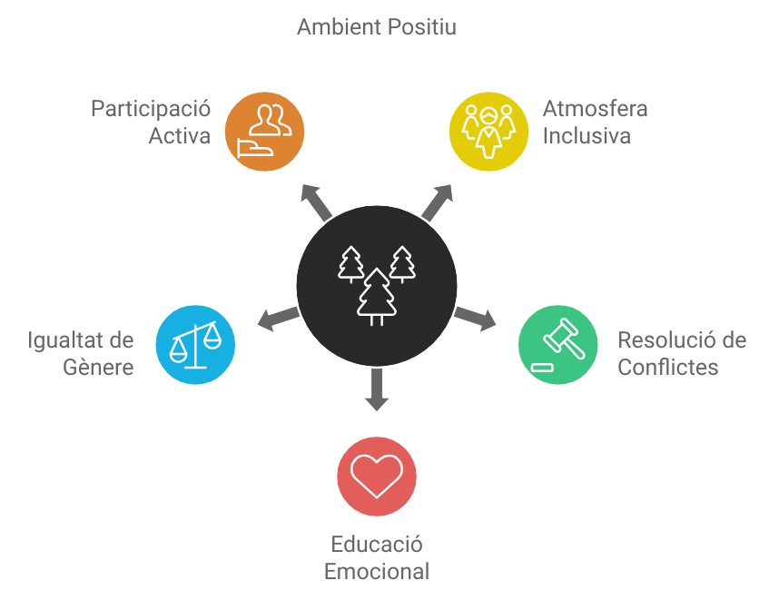 - Valors i actituds: acollida, coeducació, mediació escolar, educació emocional, educació per a la pau, inclusió, educació antiracista, programa TEI (Tutoria entre iguals).