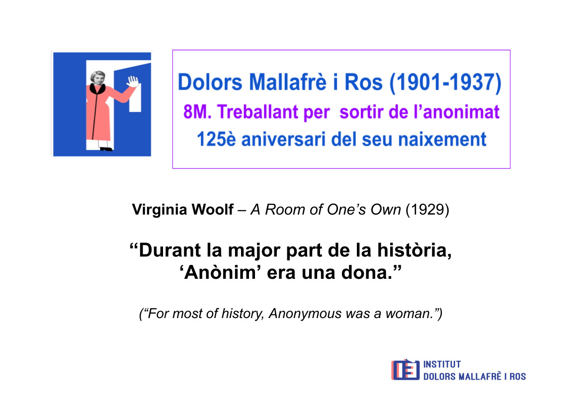 Avui dilluns 9 de març, continuem amb l’homenatge a les dones, i en especial la Dolors Mallafrè i Ros, en el 125è aniversari del seu naixement.