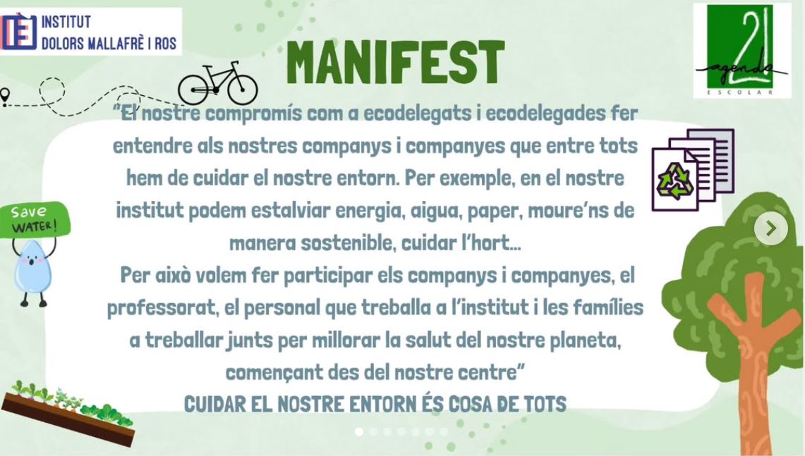 Des de l’institut, animem tota la comunitat educativa a donar suport als ecodelegats i a unir-se a les seves accions per avançar plegats cap a un futur més sostenible i respectuós amb el planeta.