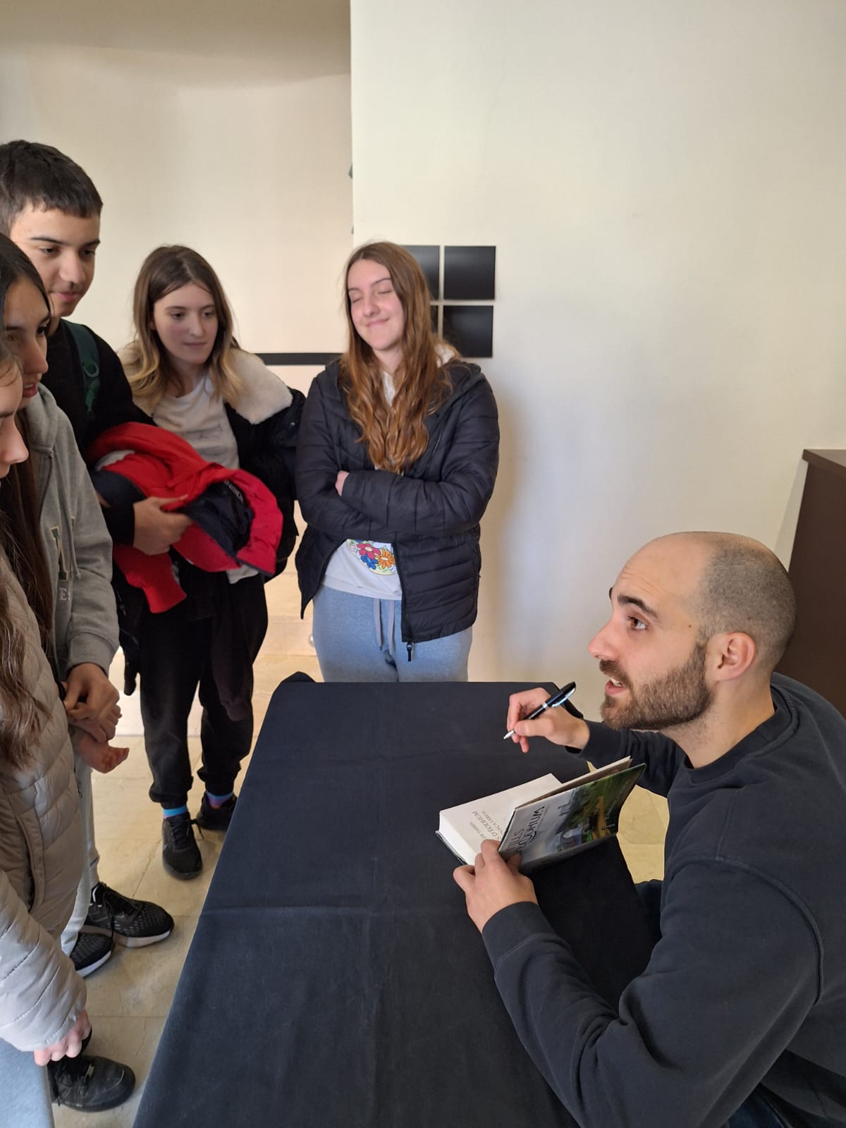 Pel que fa a l’alumnat de 3r i 4t d’ESO, la primera trobada va ser el passat 20 de febrer. Roger Tarrés ens va explicar la seva obra Fills d’Eodum: L’amenaça verda i ens va signar llibres.