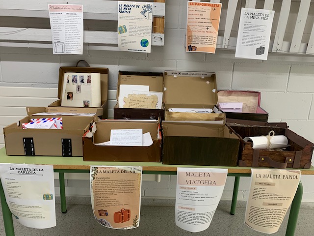 El resultat d’aquest treball es pot veure en una petita exposició situada al hall del primer pis, on s’exposen algunes de les maletes elaborades. Convidem tota la comunitat educativa a visitar-la i a descobrir les històries que s’hi amaguen.