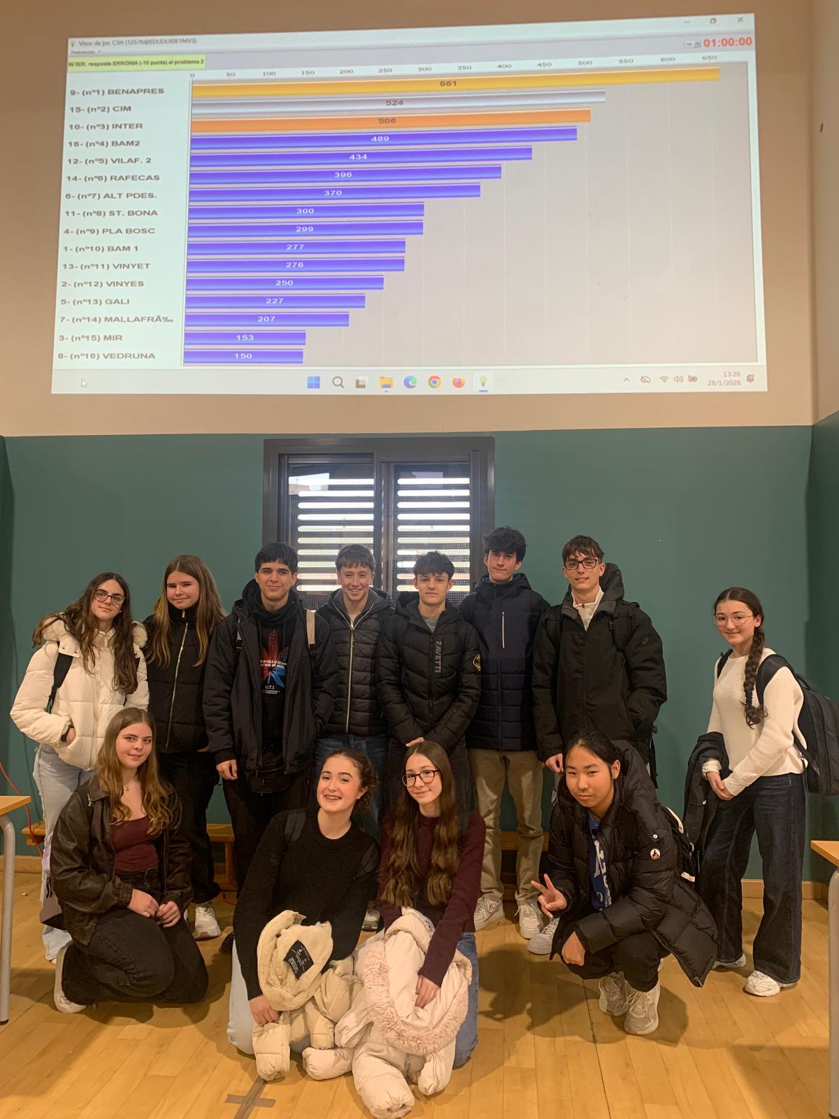 En cada categoria hi participaven setze equips procedents de diferents centres. L’equip cadet va finalitzar la competició en 16a posició, mentre que l’equip júnior va obtenir la 14a posició. L’experiència va ser molt positiva i va permetre a l’alumnat gaudir de les matemàtiques.