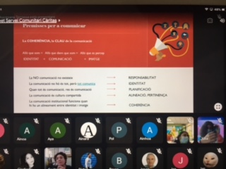 Abans d’iniciar el servei s’ha fet un Meet amb l’Eulàlia Muntane, responsable de comunicació de Càritas Diocesana Terrassa, i el voluntari de Càritas Caldes, Josep Puigdomènech. L’Eulàlia ha explicat als joves què és, què fan i com està estructurada Càritas i els ha aconsellat sobre com fer les comunicacions d’una entitat per a què no hi hagi confusions per part dels usuaris quan ho reben, entre d’altres coses.