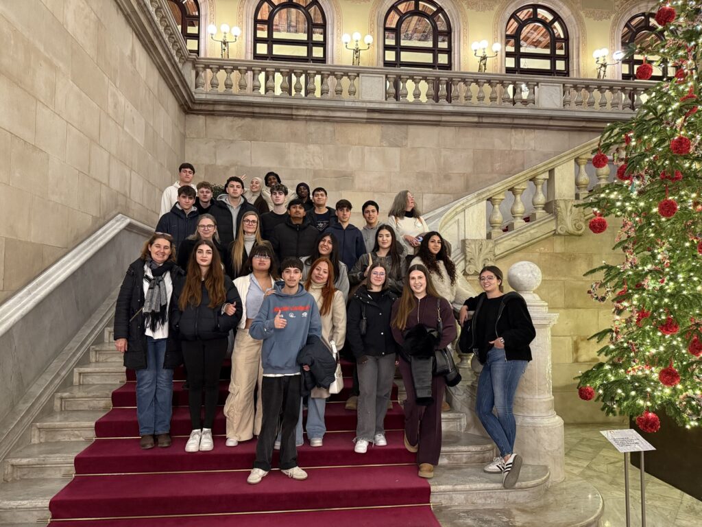 Posteriorment, el grup es va dirigir al Parlament de Catalunya, situat al Parc de la Ciutadella. Durant la visita guiada, van poder recórrer els espais més emblemàtics i entendre el funcionament intern del poder legislatiu i les tasques de representació i debat que s’hi duen a terme.