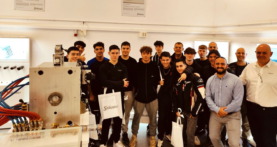 Stäubli, una companyia líder en solucions industrials d’alt rendiment ha fomentat una vegada més la connexió entre l’àmbit educatiu i el professional en rebre als estudiants del Departament de Fabricació Mecànica – Motlles i Matrius de l’Institut de Formació Professional Manolo Hugué. Aquesta iniciativa subratlla la importància de col·laborar amb les noves generacions que formaran part del futur en l’àmbit del plàstic.