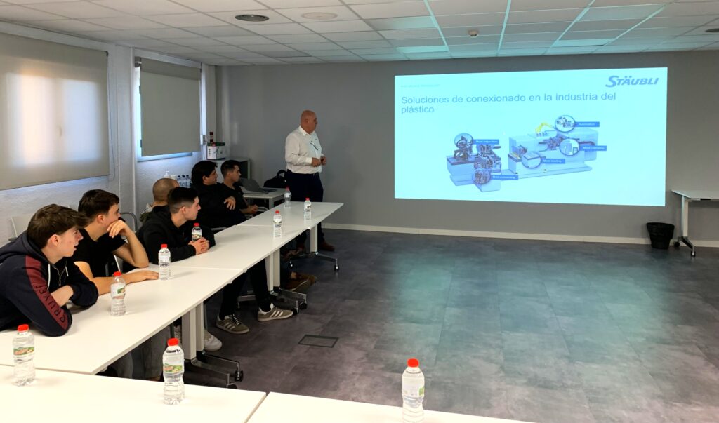 Stäubli, una companyia líder en solucions industrials d’alt rendiment ha fomentat una vegada més la connexió entre l’àmbit educatiu i el professional en rebre als estudiants del Departament de Fabricació Mecànica – Motlles i Matrius de l’Institut de Formació Professional Manolo Hugué. Aquesta iniciativa subratlla la importància de col·laborar amb les noves generacions que formaran part del futur en l’àmbit del plàstic.