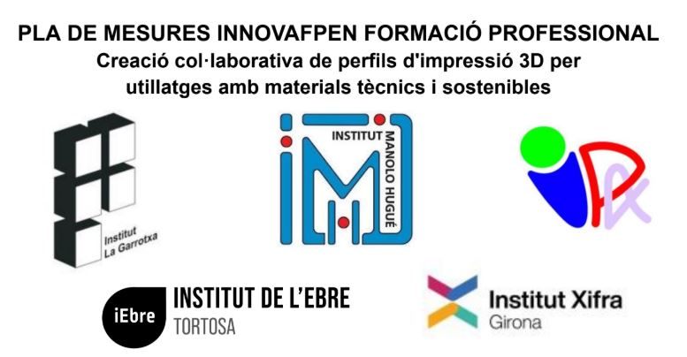 El nostre Departament de Fabricació Mecànica ha sigut seleccionat per desenvolupar un projecte amb altres 4 centres de Catalunya per col·laborar en la determinació de perfils d’impressió 3D pel disseny d’utillatges amb materials tècnics i sostenibles, d’accions de qualitat en formació professional, finançada pel Ministeri d’Educació i Formació Professional i cofinançat pel Fons Social Europeu Plus.