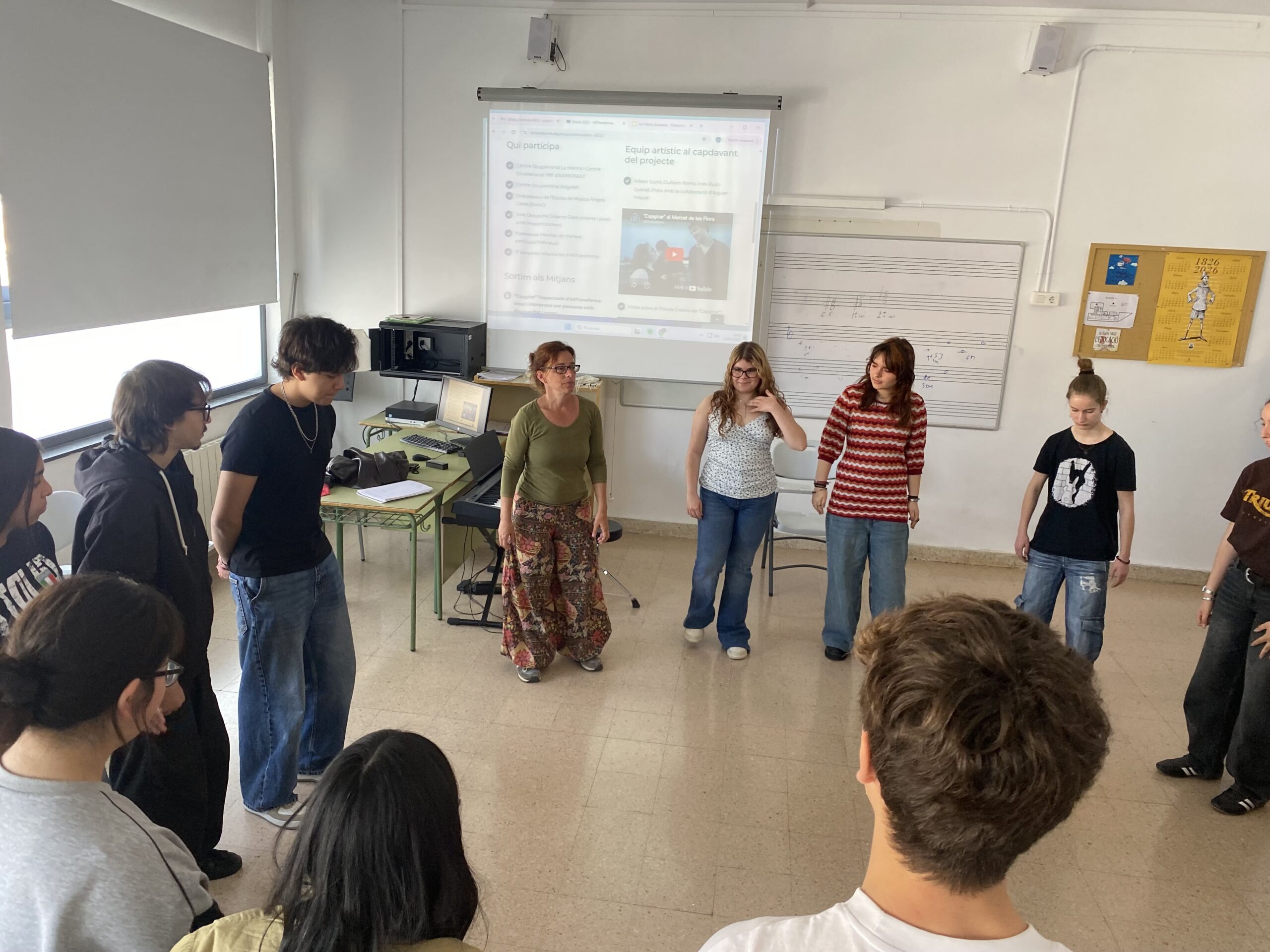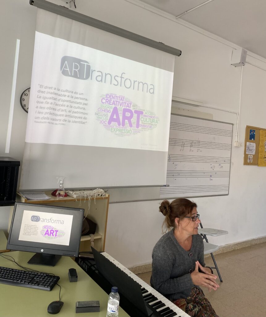 L’alumnat de l’assignatura de Música i Comunicació de 1r de BTX ha tingut l’oportunitat de conèixer, de la mà de Queralt Prats, la tasca que desenvolupa ARTransforma, una entitat que promou l’accés universal a les arts i la cultura des d’una perspectiva inclusiva i transformadora.