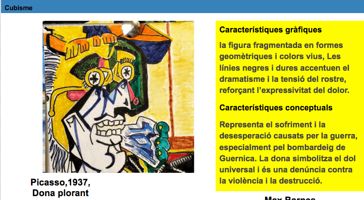 Cada grup ha cercat informació sobre un moviment concret. No ha estat fàcil localitzar imatges fiables, ja que Google no sempre prioritza els resultats més adequats per a la recerca artística.