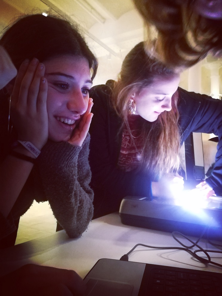 Els alumnes han intervingut en les fotografies que ells mateixos portaven, inspirant-se en les creacions dels fotògrafs que els envoltaven: Alberto García-Alix, Ouka Leele, Pablo Pérez-Mínguez i Miguel Trillo. Després, mitjançant l’ús escànners, s’han fet autoretrats i han acabat superposant la pròpia imatge a les seves creacions fotogràfiques i textuals. Tot plegat una tècnica molt experimental i estimulant. Aquí teniu unes quantes fotos del procés i del resultat, el qual acabarà, en un futur, convertint-se en un vídeo muntatge. Ja us el mostrarem quan arribi a les nostres mans.