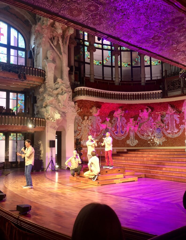 L’alumnat de l’optativa de música de 4t d’ESO ha tingut l’oportunitat de gaudir de l’espectacle “Les músiques del món” al Palau de la Música Catalana. Aquesta proposta artística, protagonitzada per un quintet vocal de veus masculines, està formada per un repertori de cançons representatives d’arreu del món interpretades íntegrament a cappella amb una tècnica excepcional.