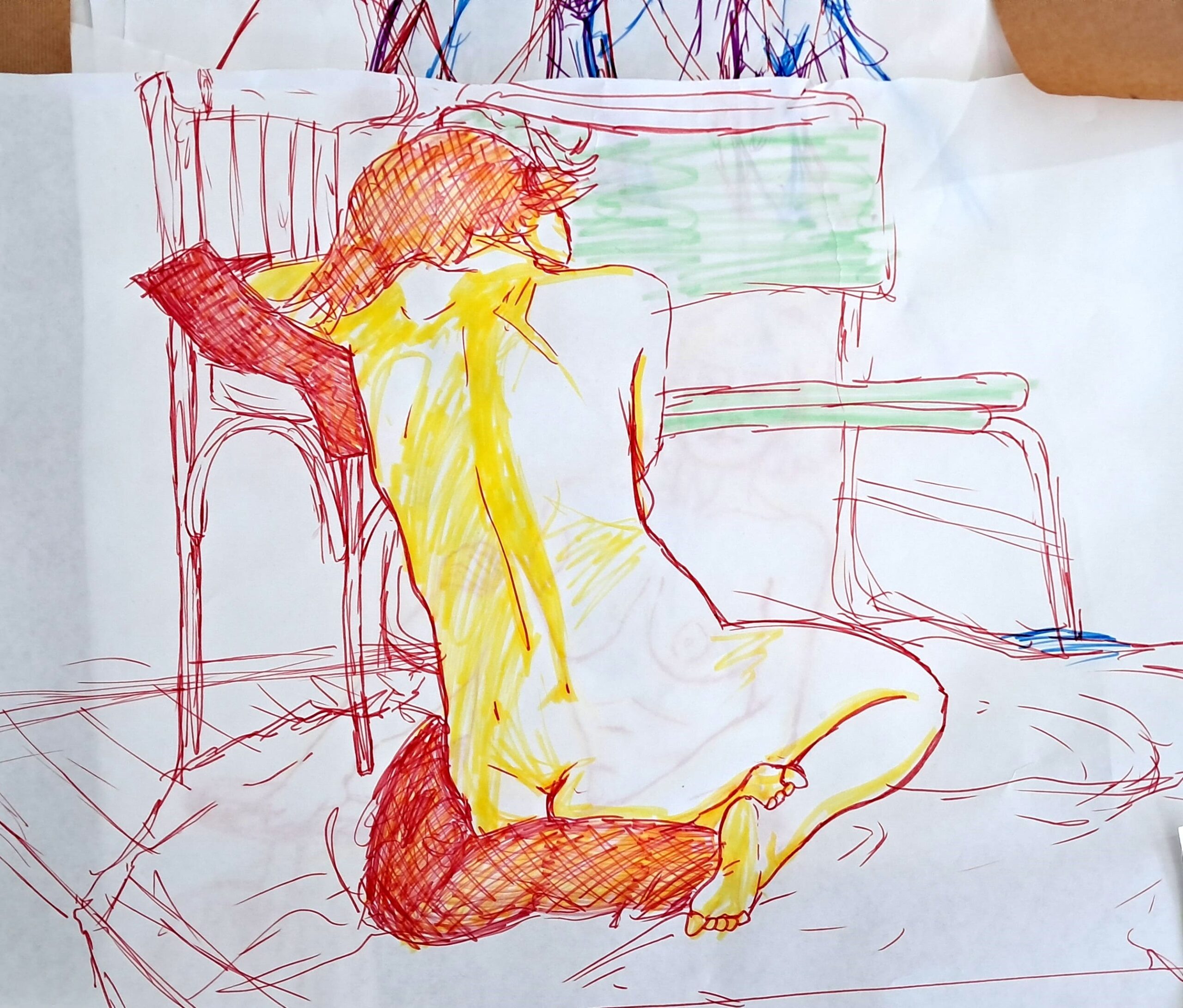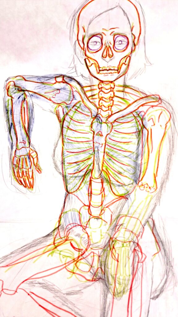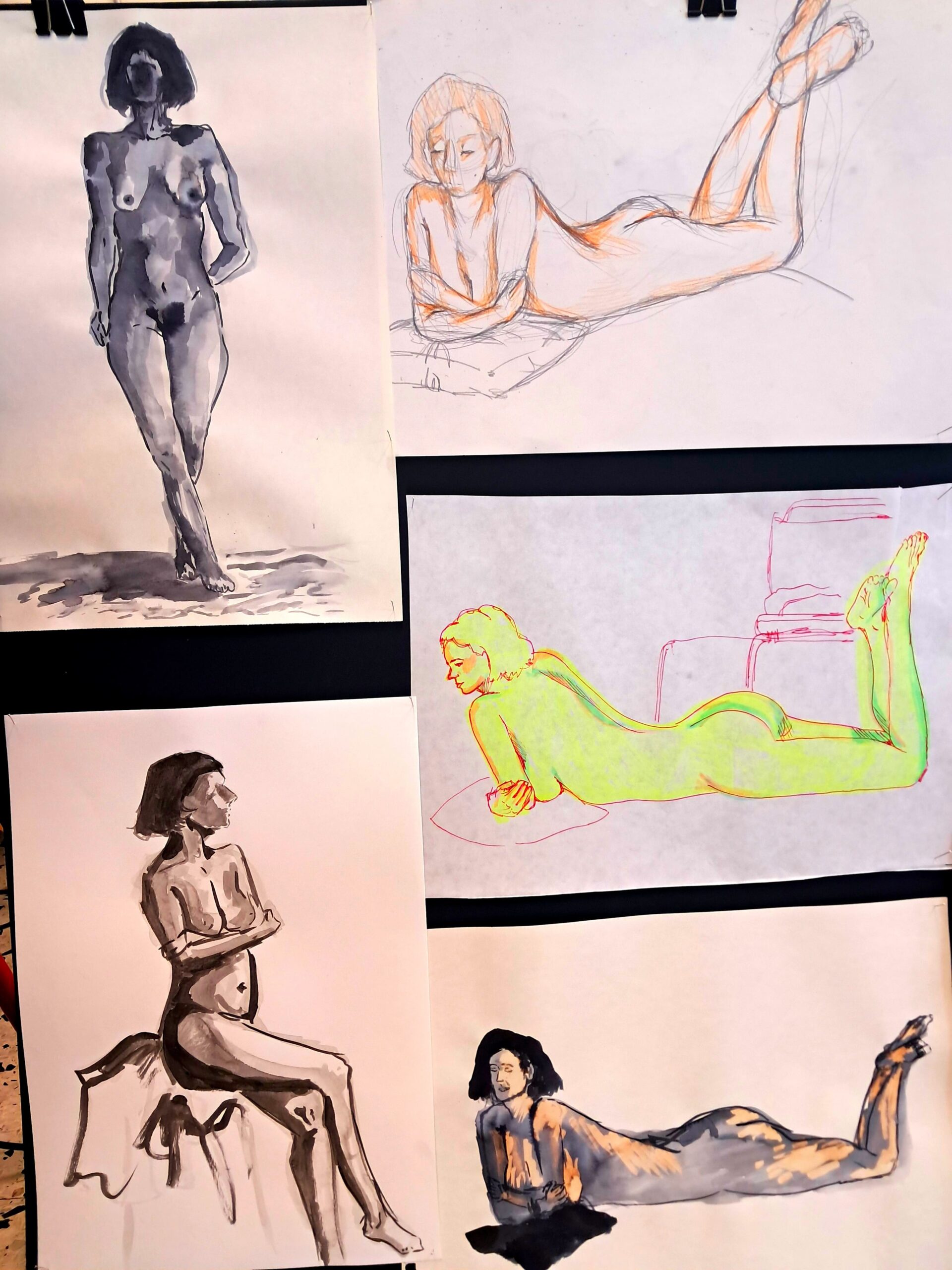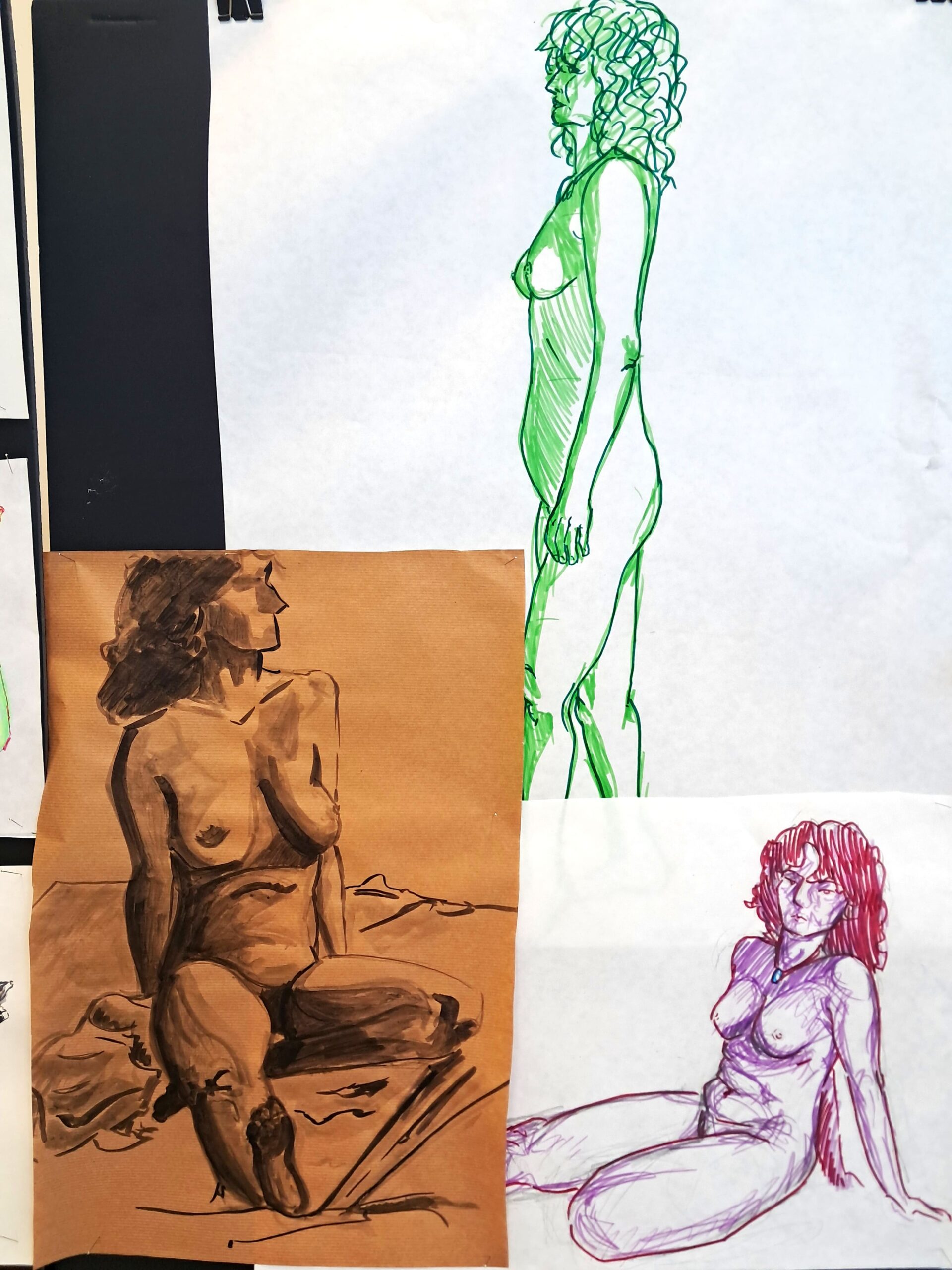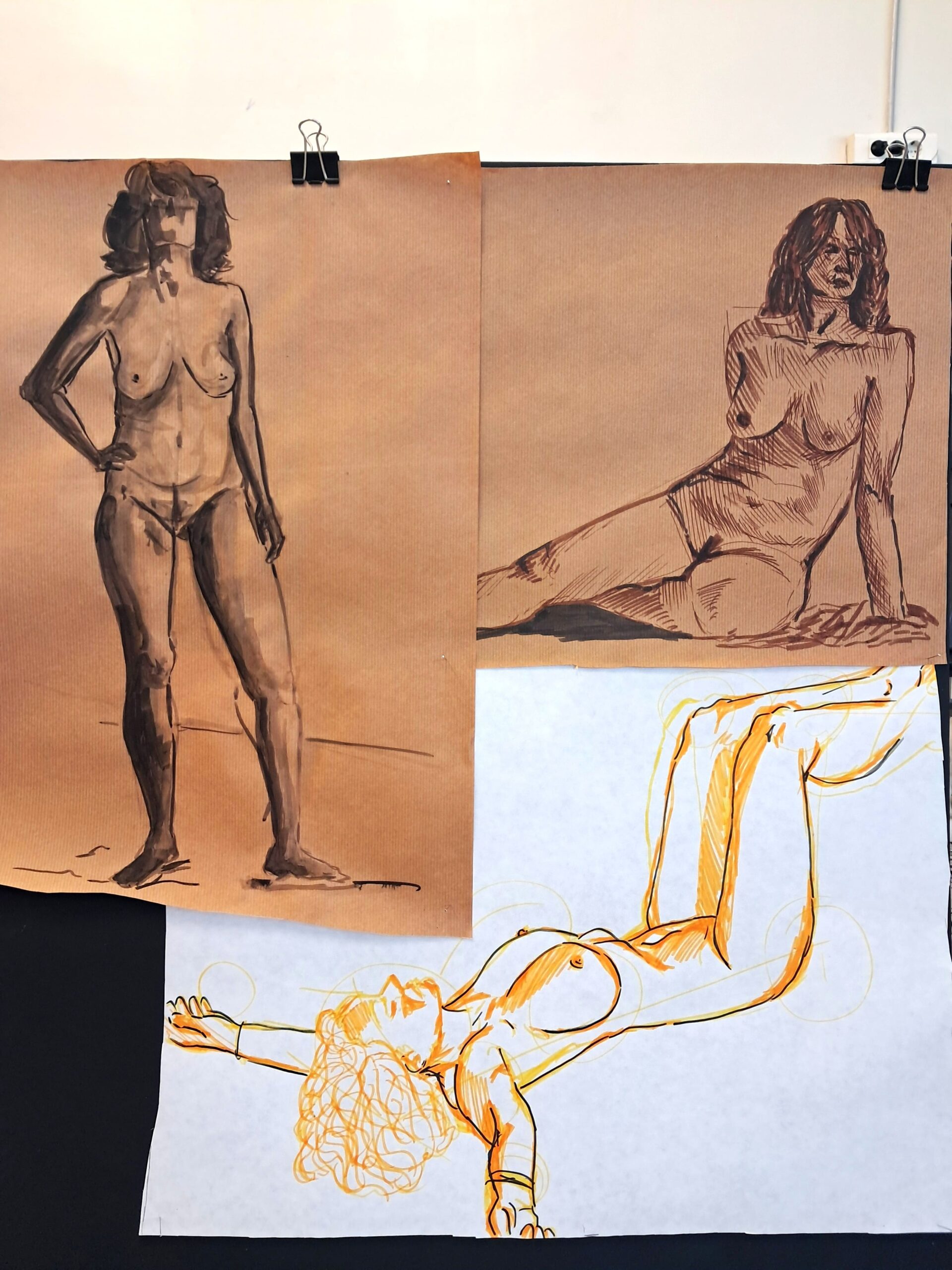 L’alumnat va treballar sistemàticament amb una concentració que rara vegada havíem vist i vam poder incloure elements ja estudiats coma ara l’espai, la perspectiva, el color, la línia… a més dels nous elements relacionats amb l’anatomia.