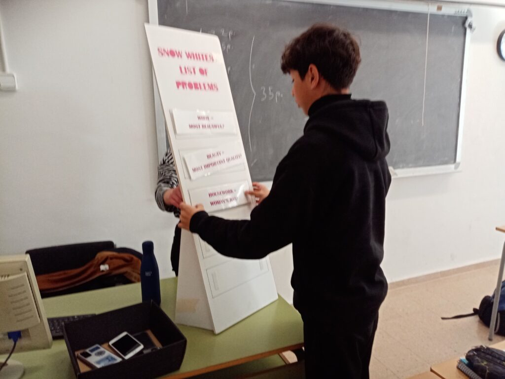 El passat dijous dia dos de març, els estudiants de segon d’ESO van assistir a un taller de Storytelling de la Blancaneus, que va ser impartit per una actriu que va interpretar els personatges principals del conte. Aquesta versió moderna del conte es va centrar en qüestionar els estereotips dels contes tradicionals, i els alumnes van ser animats a reflexionar i interactuar amb la història.