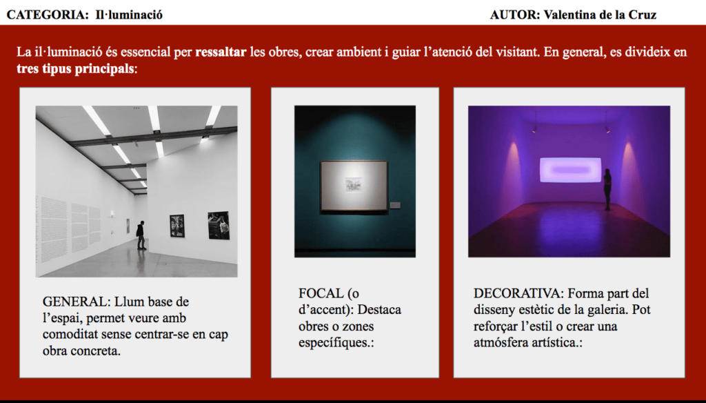 A la tornada a classe, vam elaborar diapositives analitzant les diferents vessants de la feina d’un galerista, que ens seran molt útils més endavant. Aviat us mostrarem les primeres activitats pràctiques de l’alumnat.