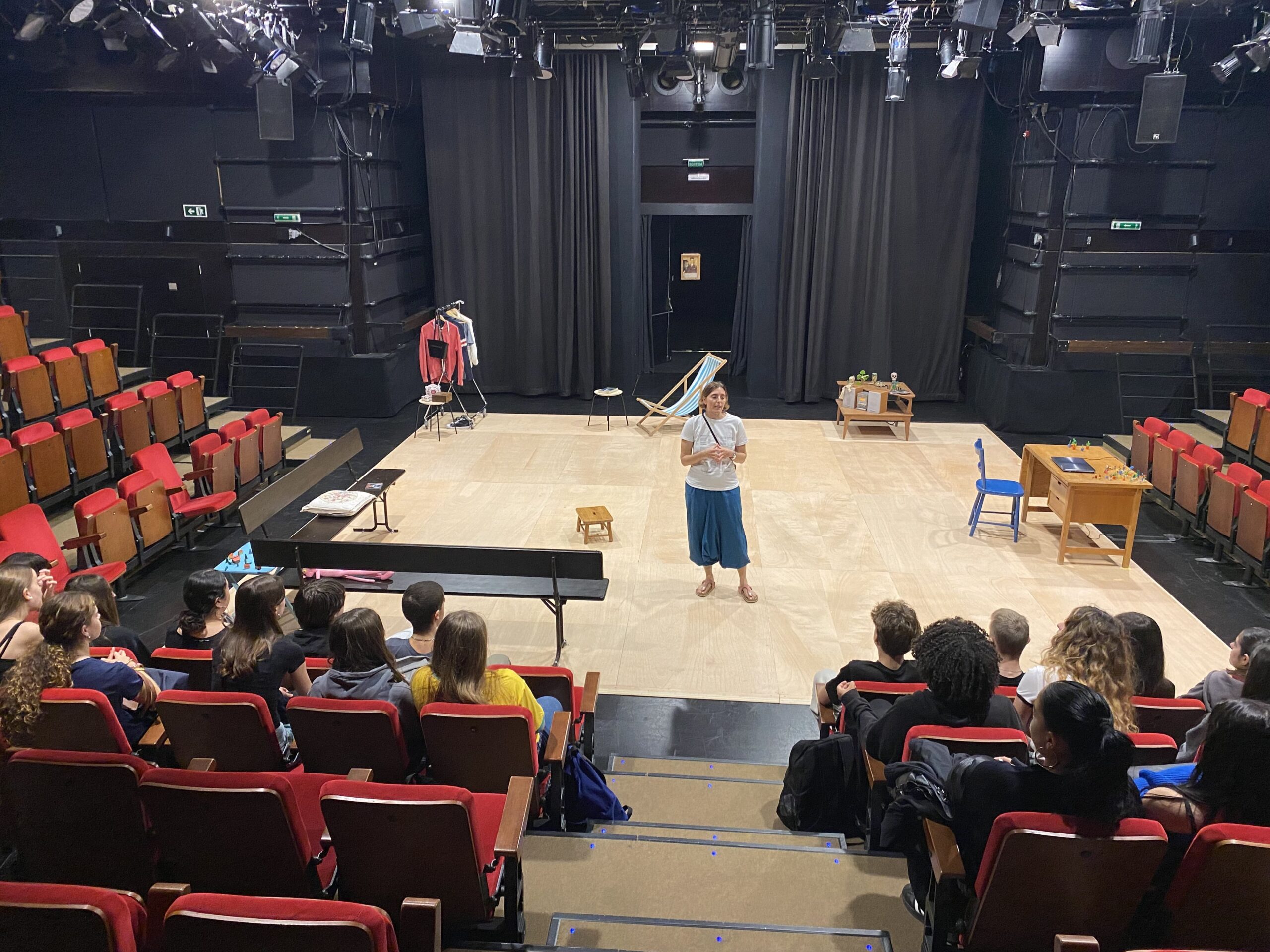 Hem pogut endinsar-nos en racons amagats i espais poc coneguts del teatre, com els camerinos, la Sala dels Miralls, l’Espai Lliure i fins i tot les zones entre bambolines, on es viu de prop la màgia del món escènic. També hem trepitjat el magnífic escenari de la Sala Fabià Puigserver i hem pujat fins a la part més alta de la sala per observar l’estructura tècnica i els mecanismes que fan possible una posada en escena professional.