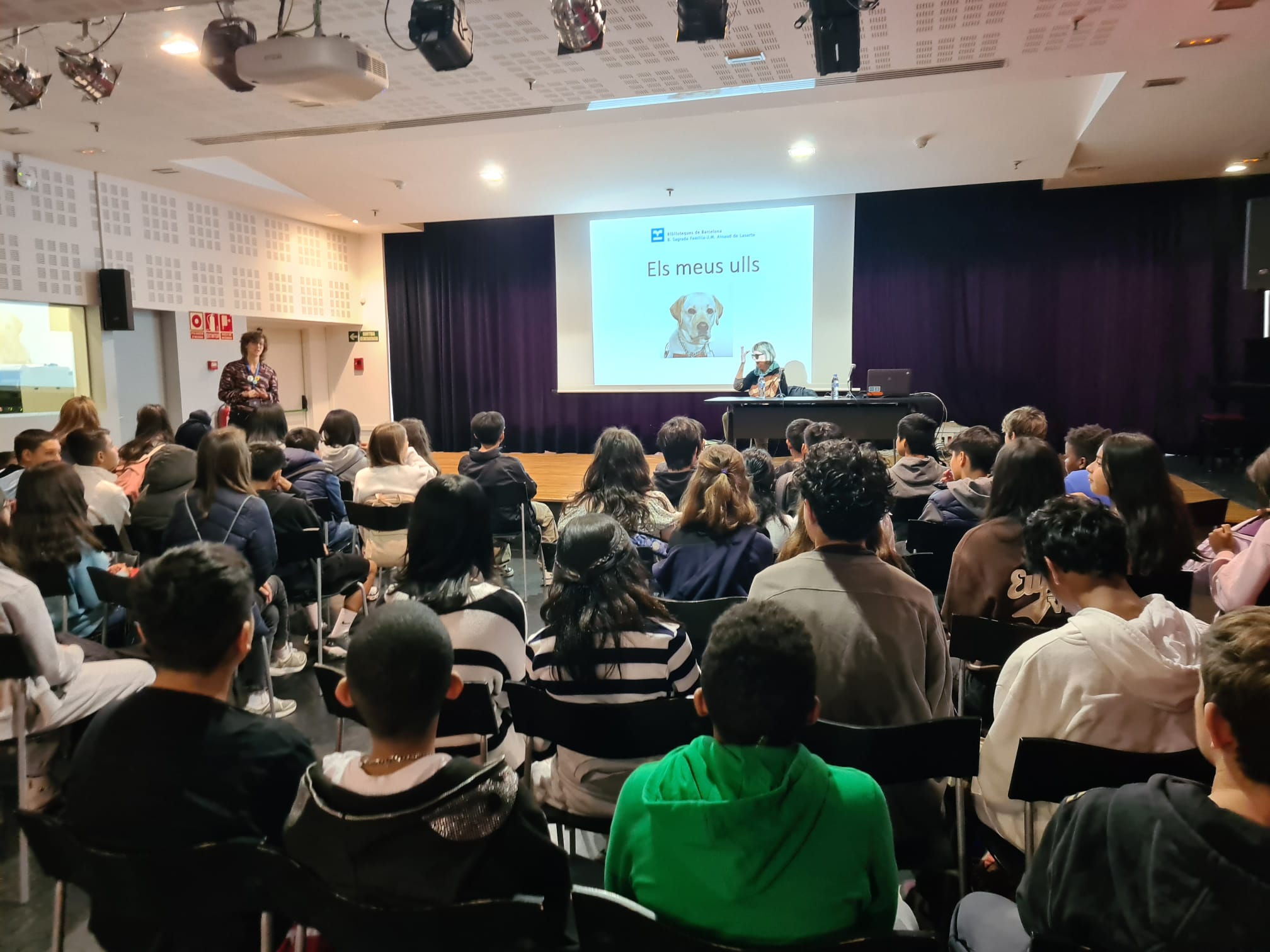 L’alumnat de 1r d’ESO hem realitzat una sortida a la Biblioteca Sagrada Família on hem assistit a una xerrada titulada “Els meus ulls”. Des de l’experiència personal, la Montserrat ens ha explicat la història del seu gos pigall. A més, hem aprofitat la sortida per passar estona d’esbarjo a un parc!