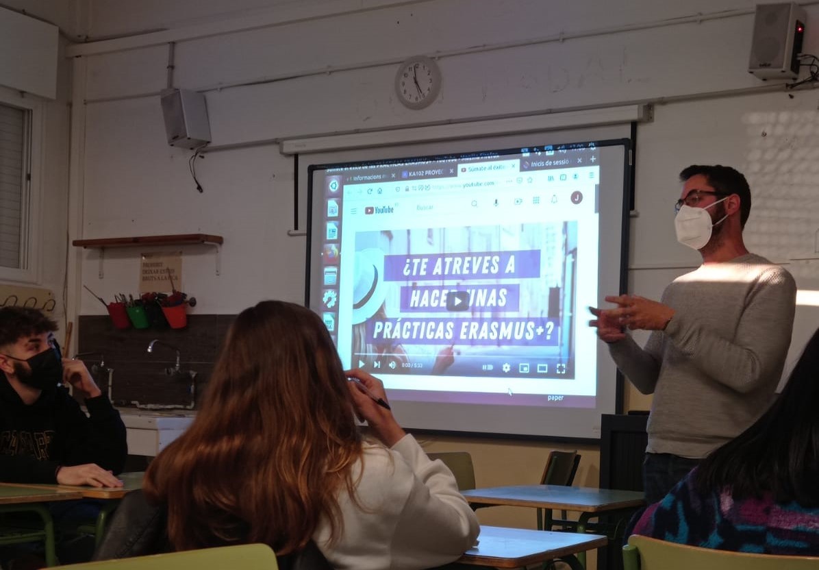 Una vintena d’estudiants de grau mitjà han assistit a la xerrada informativa sobre les mobilitats Erasmus+ d’aquest any, cofinançades per la Unió Europea. L’interès dels alumnes ha superat les previsions del professorat i demostra que una bona part dels estudiants tenen interès en millorar les seves competències professionals en un entorn de pràctiques internacional, alhora que aprenen diferents maneres de treballar en un idioma estranger.