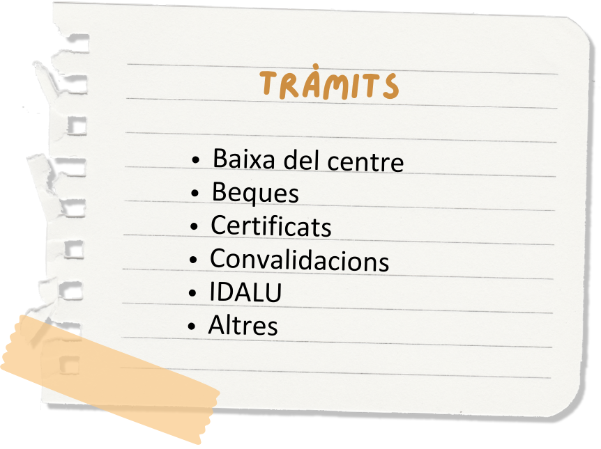 Gestionem els tràmits acadèmics administratius que sol·licitis: certificats acadèmics, tramitació i recollida de títols, preinscripció, matrícula, etc.