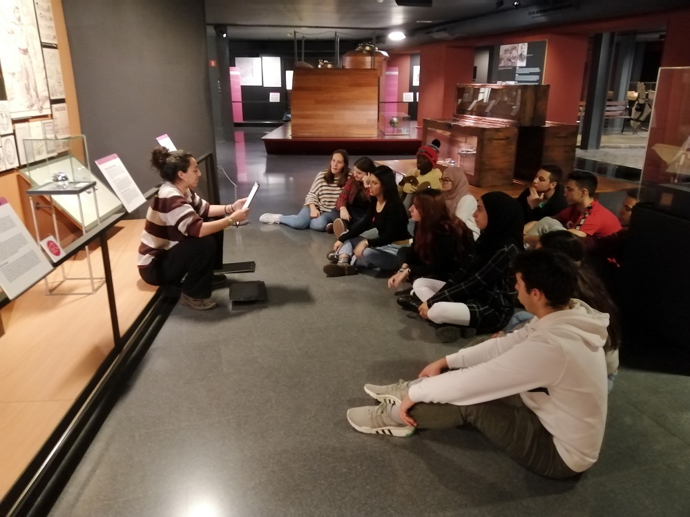 A la tarda, vam estar al Museu d’Història de Catalunya, on vam fer un repàs al temari d’Història d’Espanya que entra a la selectivitat. El treball va consistir a treballar fonts històriques contemporànies als fets, de manera que en un primer moment les van estudiar l’alumnat i després van fer una posada en comú amb la guia del museu, d’aquesta manera van fer més vivencial l’estudi de la Història.