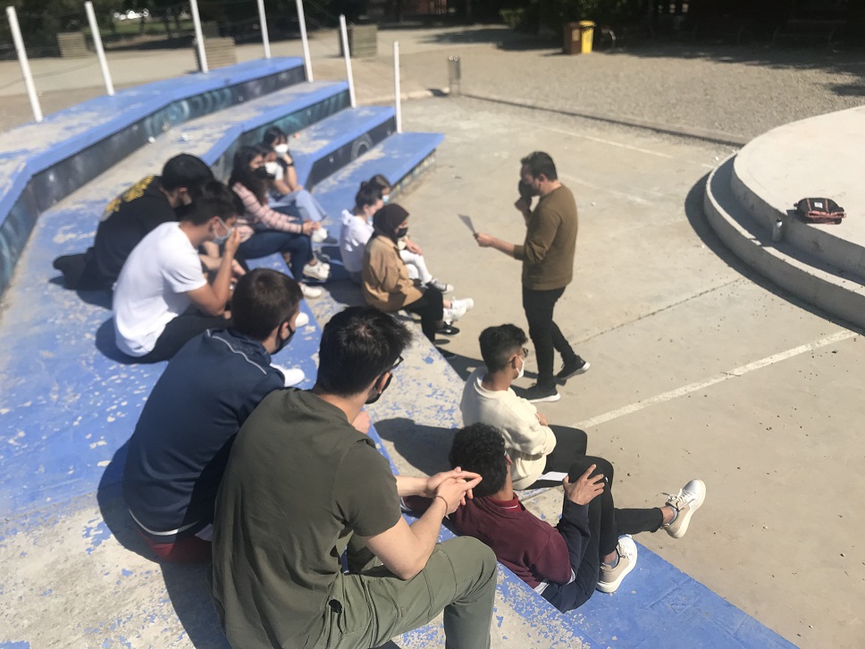 2nd of Batxillerat students are getting to the end of the school year, OMG!!, and obviously they have their nerves on edge. So we decided to take advantage of the sunny day and go outdoors for Joshua’s session.