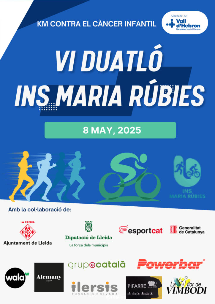 La sisena edició de la Duatló “Ins Maria Rúbies” ha estat ideada amb l’objectiu de promocionar l’activitat física i els hàbits saludables, i també amb una vessant solidària, que aquest any anirà destinada a col·laborar amb l’iniciativa “Km contra el càncer infantil”