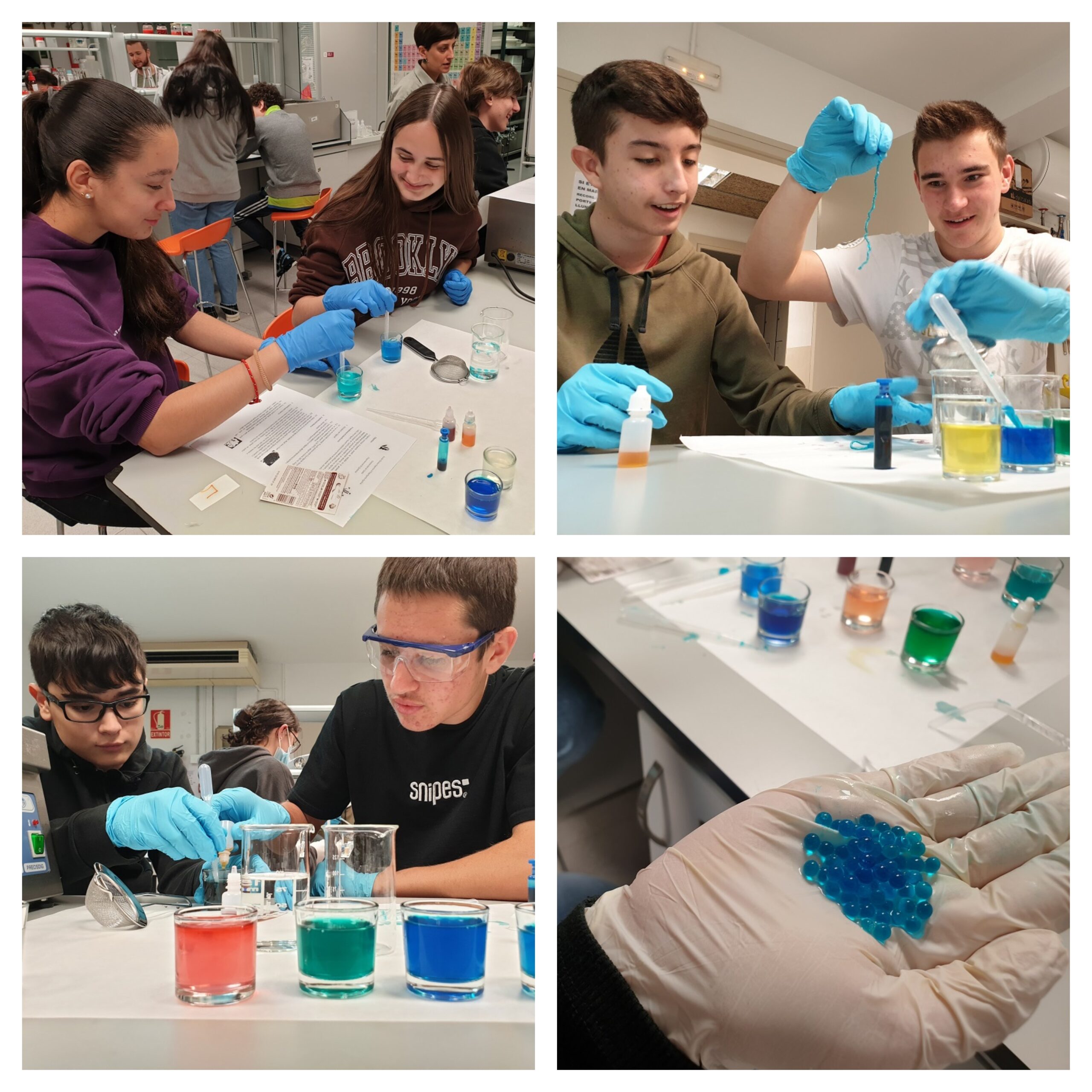 Han vist els diferents tipus d’esferificació (bàsica i inversa) i han pogut experimentar al laboratori amb diferents formes i colors per encapsular els aliments.