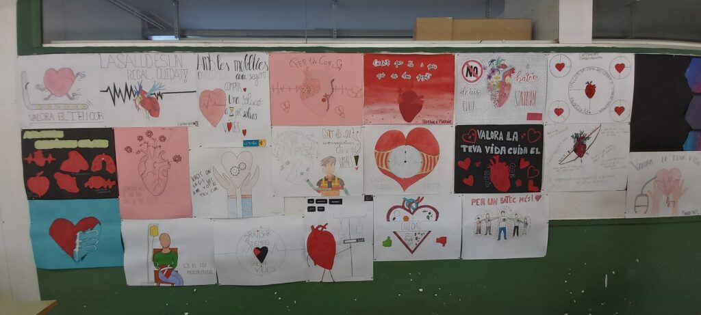 En aquestes darreres setmanes, l’alumnat de 3r i 4t d’ESO s’ha sensibilitzat amb la Marató de TV3 amb el tema d’aquest any: la salut cardiovascular. El departament de dibuix us felicita a tots i totes per les vostres propostes artístiques ja que han estat genials. En la fotografia adjunta podem veure alguns d’aquests treballs.