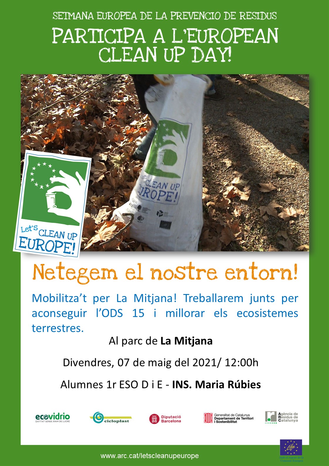 El Maria Rúbies també se sumarà a aquesta iniciativa i aprofitant la visita dels alumnes de 1r d’ESO a la Mitjana, ens mobilitzarem per la neteja d’aquest parc emblemà tic de la ciutat. El Mobilitza’t per La Mitjana del Maria Rúbies serà una de les tres accions programades a Lleida i una de les 208 que es realitzaran a tot Catalunya. Tenim tot preparat per divendres, ja us ho explicarem!