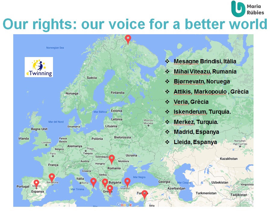 Utilitzant la llengua anglesa, l’alumnat de 3r d’ESO, compartirà experiències amb alumnes europeus amb la finalitat d’aprofundir en el coneixement dels drets fonamentals dels infants, ser conscients de les seves responsabilitats socials i dels valors com la tolerància i el respecte.