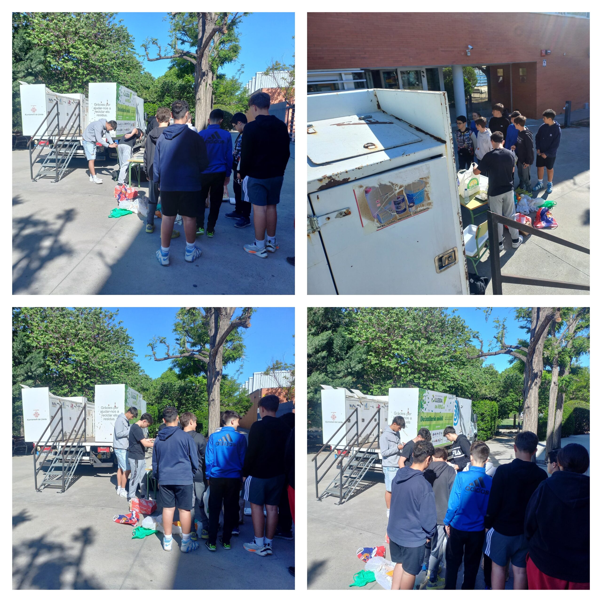 Avui, divendres 19 d’abril ha vingut “La deixalleria mòbil” a l’institut, un servei que pretén facilitar la correcta gestió dels residus, i alhora, convertir la tasca de recollida en una eina educativa. Han estat els propis alumnes els que han acudit a lliurar els residus. Han portat piles gastades, bombetes, petits electrodomèstics, mobiliari vell i oli usat, entre altres materials.