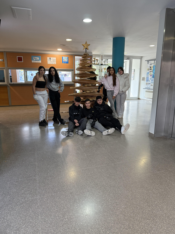 Aquest desembre, els alumnes del Programa de Diversificació Curricular (PDC) han estat els encarregats de donar una nova vida a l’arbre de Nadal de l’institut. Durant diversos dies, han desmuntat l’estructura, l’han polit amb cura, li han aplicat una capa de vernís perquè recuperés la seva brillantor i, finalment, l’han tornat a muntar al vestíbul.