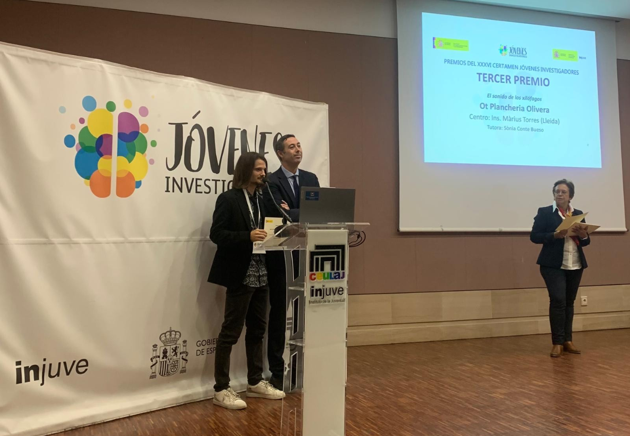 L’alumne Ot Plancheria Olivera, de Batxillerat d’Arts de l’Institut Màrius Torres, ha estat guardonat amb el 3r premi al XXXVI Certamen Jóvenes Investigadores 2025, celebrat al Centro Eurolatinoamericano de Juventud (CEULAJ) de Mollina (Màlaga).