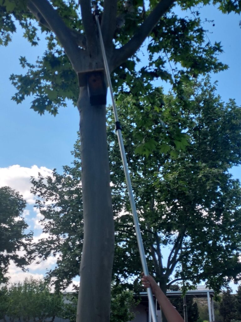 La setmana passada, el dia 29 d’abril, l’alumnat de l’APS d’Escoles Sostenibles ja vam poder penjar al nostre centre una nova caixa niu amb la nova perxa construïda per l’Eric Montoy de 1r de Batxillerat, a qui li donem les gràcies. També vam penjar-ne una altra al carrer Ton Sirera que vam restaurar.