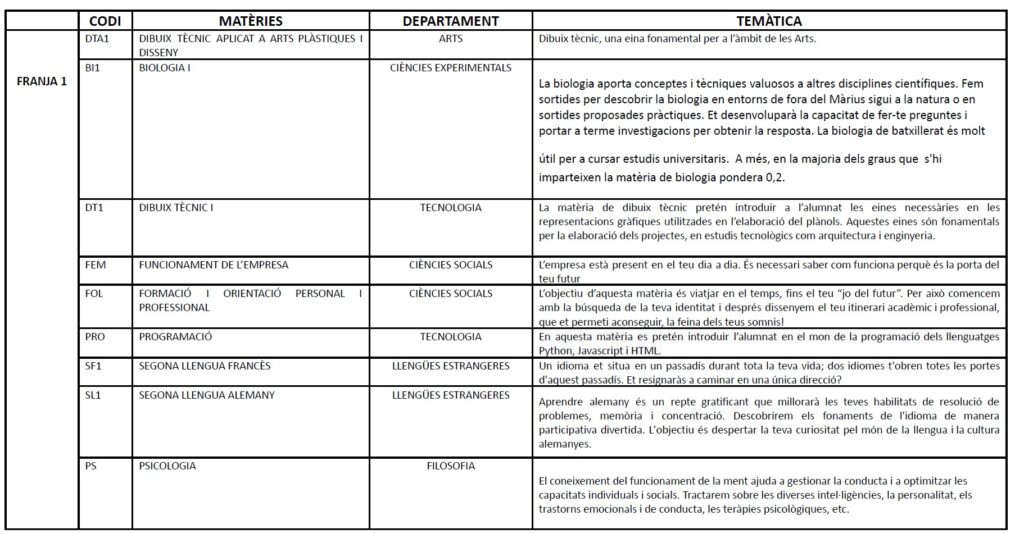 A continuació us presentem una breu descripció de les diferents assignatures optatives de les franges 1, 2 i 3.