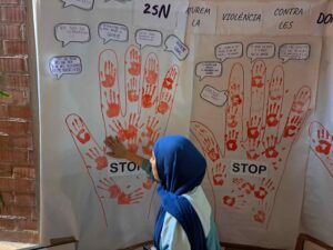 El passat 25N, dia de l’eliminació de la violència contra les dones, els alumnes de cicles van trobar un moment per al debat, reflexió i conscienciació. Van el·laborar un gran mural al hall per expressar el seu rebuig, i per recordar-nos, que ENTRE TOTS hem d’aturar qualsevol tipus de violència contra les dones, ja sigui física, verbal, psicològica, sexual o econòmica. Hem d’estar en alerta! El silenci també és violència.