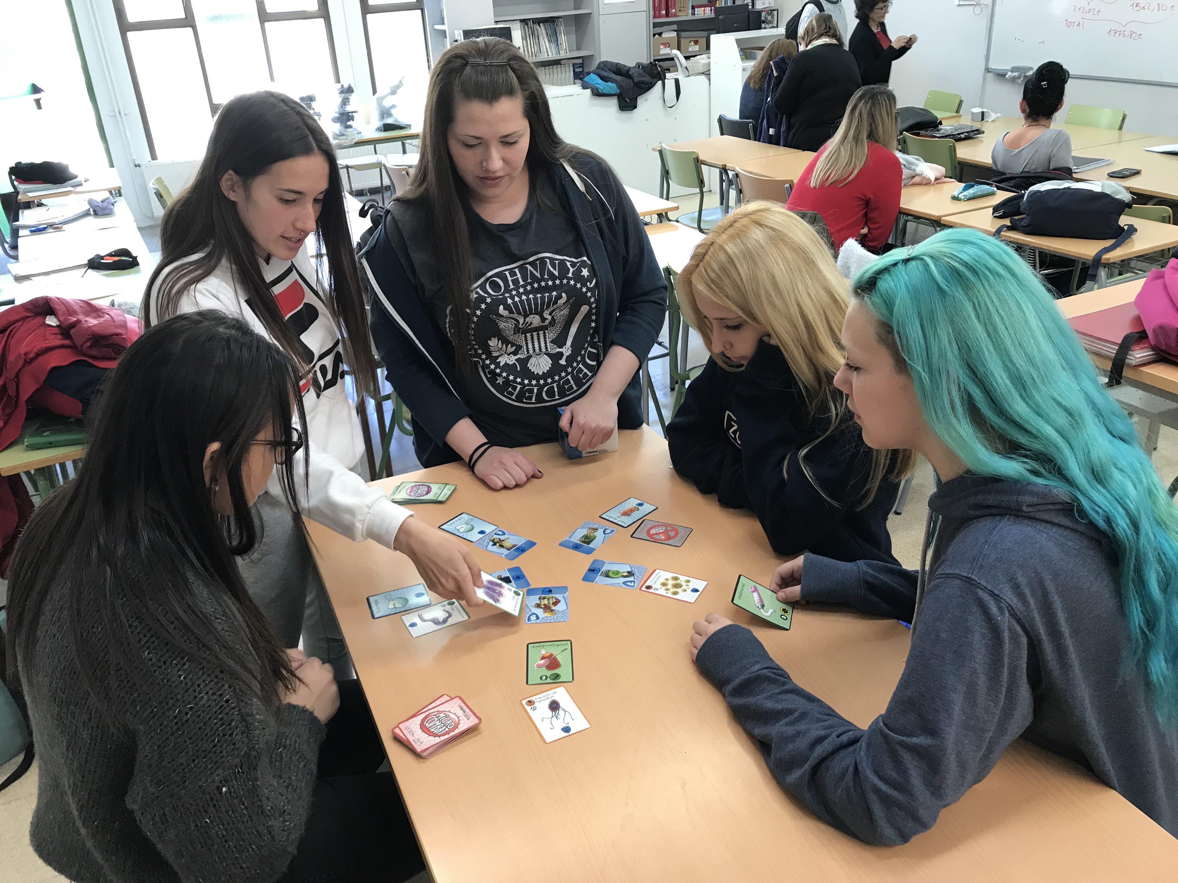 Al cicle de farmàcia aprenem a l’hora que juguem. Aquest curs hem fet alguns kahoots per reforçar els coneixements dels mòduls; hem fet varis “pasa palabra” per aconseguir recordar els impronunciables noms dels fàrmacs; hem utilitzat un joc de cartes que ens han prestat el centre de recerca ISGLOBAL (Institut de Salut Global de Barcelona) per conscienciar-nos sobre els problemes que comporten les resistències a antibiòtics i fins i tot hem fet un escape room!