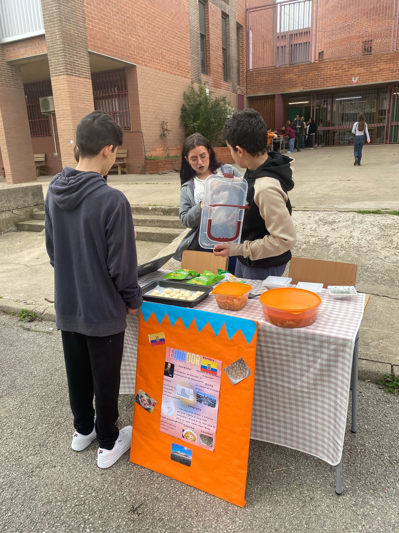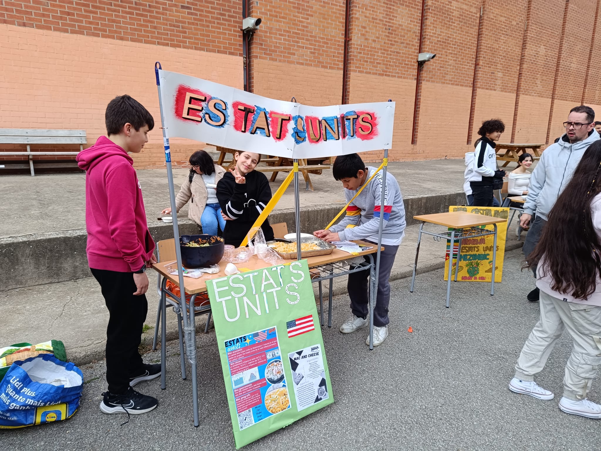 L’alumnat de 1r ESO dins de la franja de projectes, i un cop finalitzat el projecte EAT THE WOLD, on a través de l’estudi dels costums de diferents països han fet una fira gastronòmica dels menjars típics de cada país.