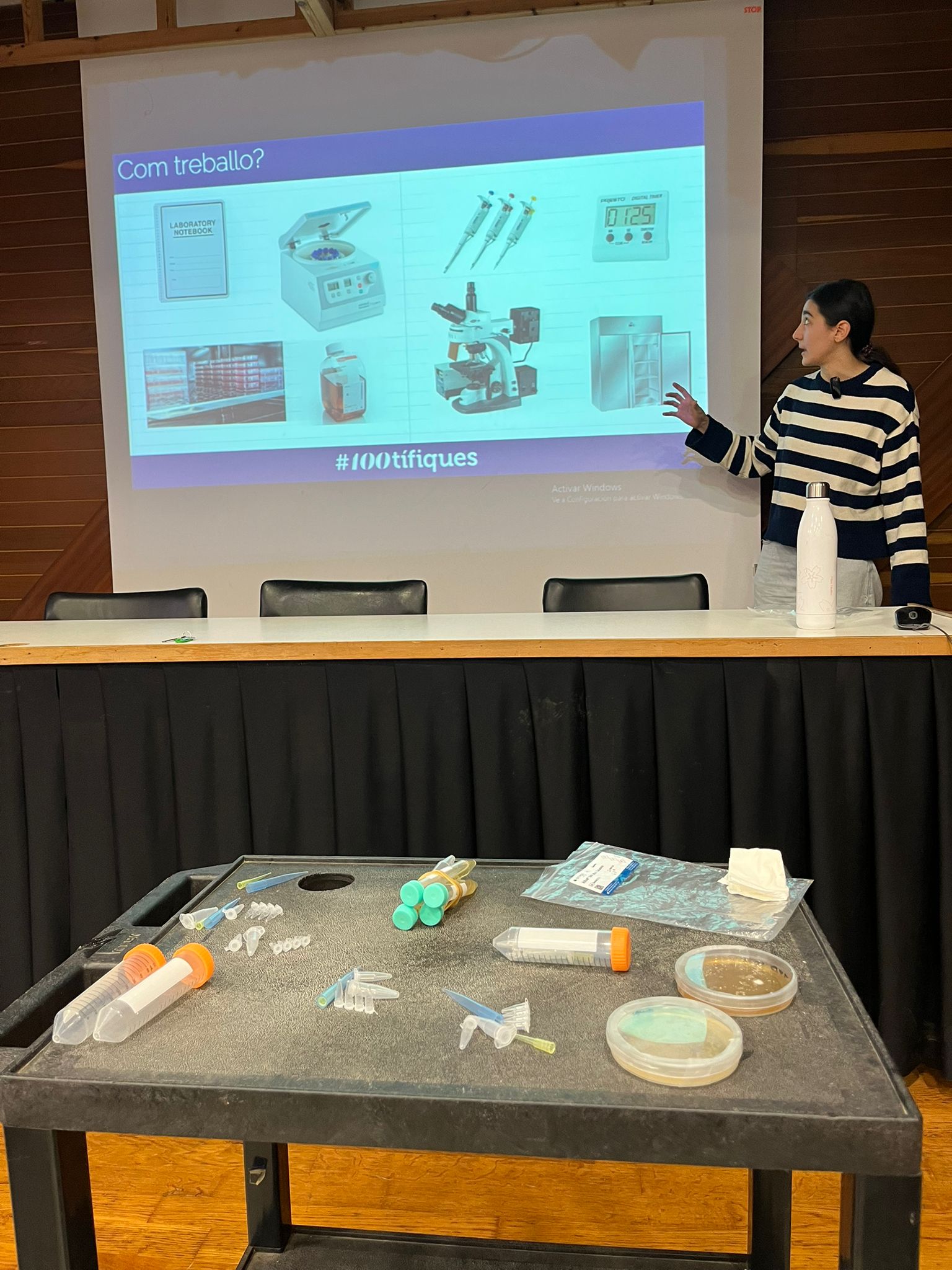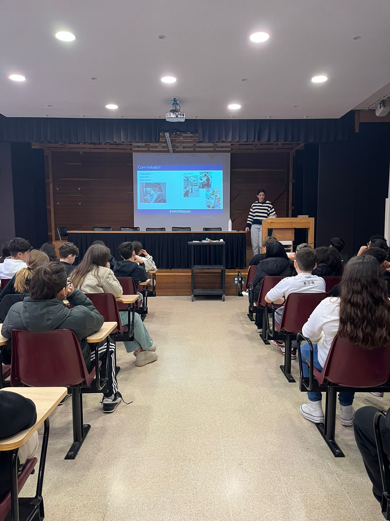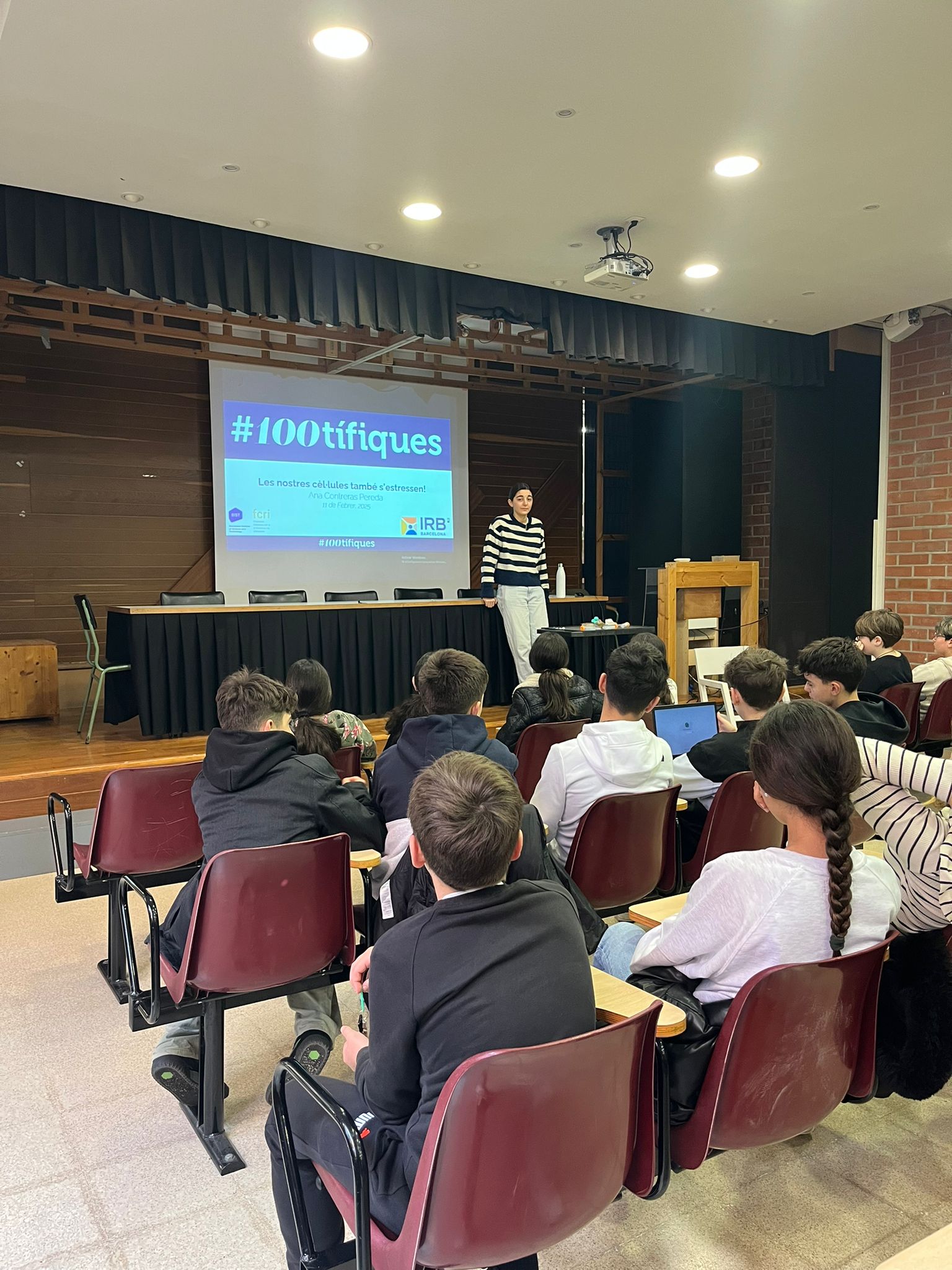 Avui ens ha fet una xerrada l’Ana Contreras Pereda per celebrar l’11F, el dia internacional de la nena i la dona en la ciència. Ens ha explicat que treballa amb cèl·lules per esbrinar com aquestes responen a l’estrès a l’IRB (Institut de Recerca Biomèdica), hem pogut fer-li preguntes i conèixer millor com és la seva feina.