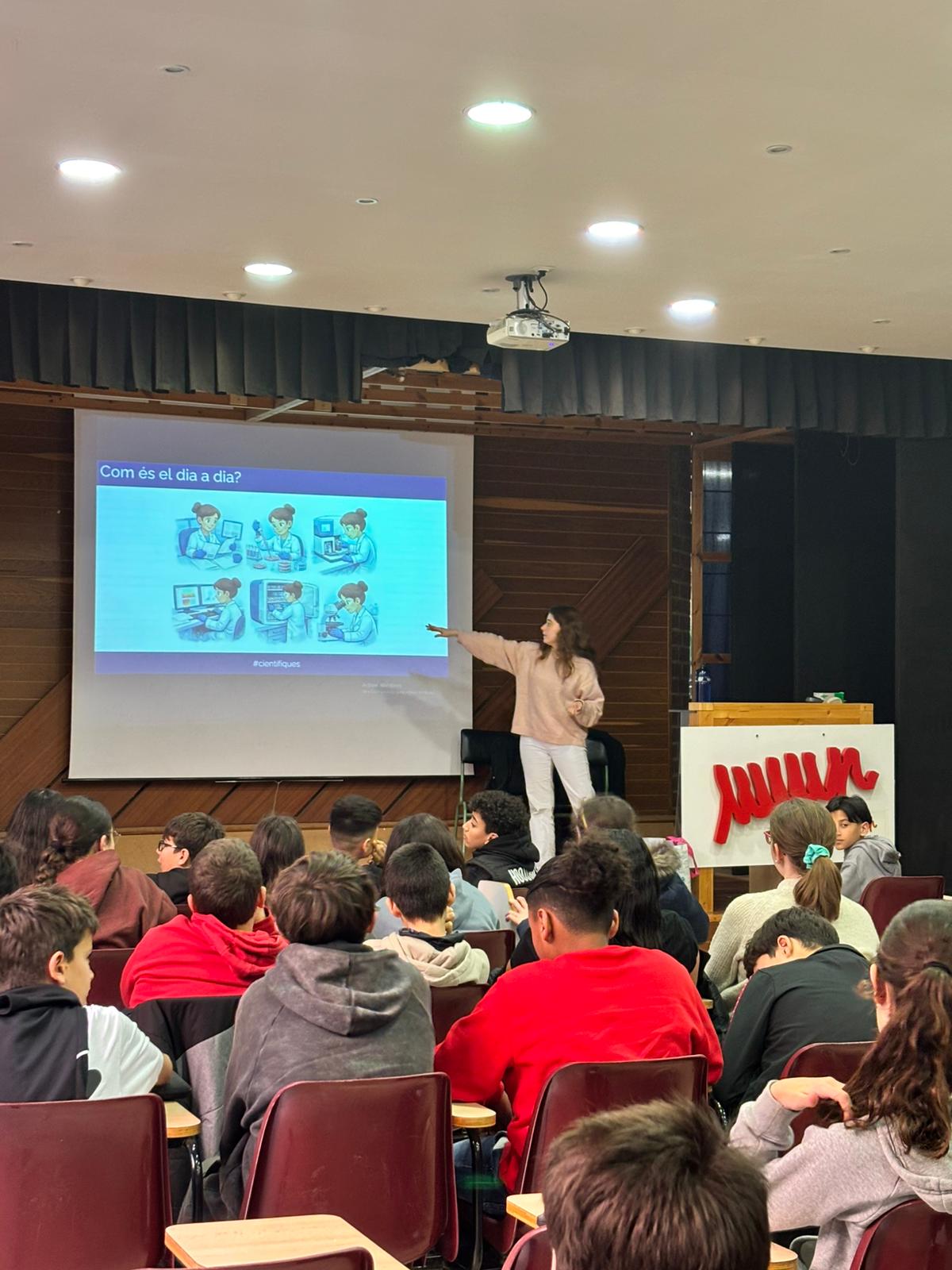 Avui els alumnes de 1r d’ESO hem participat en una xerrada per celebrar el dia internacional de la nena i la dona en la ciència gràcies al programa #científiques de la FCRI.